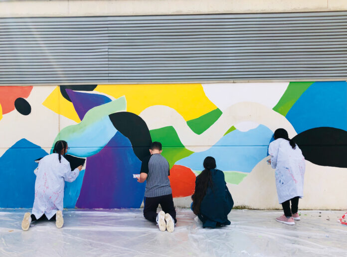 Alumnat de l’Institut Escola La Mina omple de color i vitalitat el mur del pati