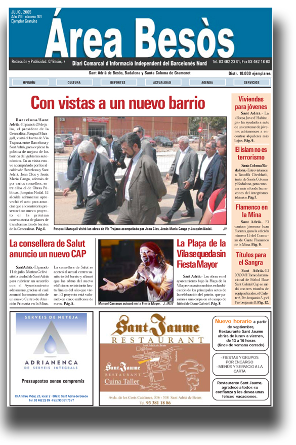InicioHemeroteca (25 Anys) Hemeroteca (25 Anys) Àrea Besòs 101 Juliol 2005 Montse Sáez 22 de marzo de 2020 FacebookTwitter AB0101 Cuota FacebookTwitter Artículo anteriorÀrea Besòs 100 Juny 2005Artículo siguienteÀrea Besòs 102 Especial Festa Major 2005 Montse Sáezhttp://www.areabesos.com/diario Últims Articles Comarca Nova edició del CINC, el Cicle de Cinema Infantil en Català, a l’Ocine del Màgic Badalona Actualitat L’ Ajuntament de Sant Adrià de Besòs i el Col·legi Sant Gabriel col·laboren amb l’organització Abre sus Ojos Actualitat Els Mossos d’Esquadra detenen l’autor del robatori d’una bicicleta elèctrica i la retornen al seu propietari a Sant Adrià de Besòs DEJA UNA RESPUESTA Cancelar respuesta Comentario: Por favor ingrese su comentario! Nombre:* Por favor ingrese su nombre aquí Correo electrónico:* ¡Has introducido una dirección de correo electrónico incorrecta! Por favor ingrese su dirección de correo electrónico aquí Sitio web: Guardar mi nombre, correo electrónico y sitio web en este navegador la próxima vez que comente. Δ 3,391FansMe gusta1,640SeguidoresSeguir0SuscriptoresSuscribirte Publicitat Últims Articles Comarca Nova edició del CINC, el Cicle de Cinema Infantil en Català, a l’Ocine del Màgic Badalona Actualitat L’ Ajuntament de Sant Adrià de Besòs i el Col·legi Sant Gabriel col·laboren amb l’organització Abre sus Ojos Actualitat Els Mossos d’Esquadra detenen l’autor del robatori d’una bicicleta elèctrica i la retornen al seu propietari a Sant Adrià de Besòs Actualitat Mor un home mentre treballava en una empresa de Sant Adrià Opinió Chínchate Ayuso: la Flotilla está triunfando Cargar más