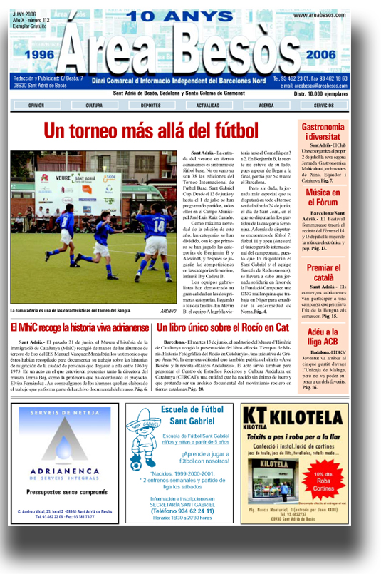 InicioHemeroteca (25 Anys) Hemeroteca (25 Anys) Àrea Besòs 112 Juny 2006 Montse Sáez 3 de abril de 2020 FacebookTwitter AB0112 Cuota FacebookTwitter Artículo anteriorÀrea Besòs 111 Maig 2006Artículo siguienteÀrea Besòs 113 Juliol 2006 Montse Sáezhttp://www.areabesos.com/diario Últims Articles Comarca Nova edició del CINC, el Cicle de Cinema Infantil en Català, a l’Ocine del Màgic Badalona Actualitat L’ Ajuntament de Sant Adrià de Besòs i el Col·legi Sant Gabriel col·laboren amb l’organització Abre sus Ojos Actualitat Els Mossos d’Esquadra detenen l’autor del robatori d’una bicicleta elèctrica i la retornen al seu propietari a Sant Adrià de Besòs DEJA UNA RESPUESTA Cancelar respuesta Comentario: Por favor ingrese su comentario! Nombre:* Por favor ingrese su nombre aquí Correo electrónico:* ¡Has introducido una dirección de correo electrónico incorrecta! Por favor ingrese su dirección de correo electrónico aquí Sitio web: Guardar mi nombre, correo electrónico y sitio web en este navegador la próxima vez que comente. Δ 3,391FansMe gusta1,640SeguidoresSeguir0SuscriptoresSuscribirte Publicitat Últims Articles Comarca Nova edició del CINC, el Cicle de Cinema Infantil en Català, a l’Ocine del Màgic Badalona Actualitat L’ Ajuntament de Sant Adrià de Besòs i el Col·legi Sant Gabriel col·laboren amb l’organització Abre sus Ojos Actualitat Els Mossos d’Esquadra detenen l’autor del robatori d’una bicicleta elèctrica i la retornen al seu propietari a Sant Adrià de Besòs Actualitat Mor un home mentre treballava en una empresa de Sant Adrià Opinió Chínchate Ayuso: la Flotilla está triunfando Cargar más