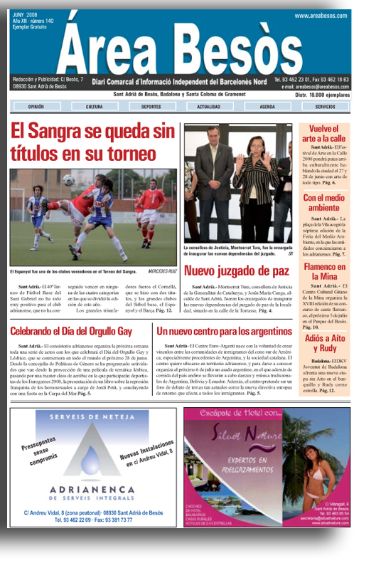 InicioHemeroteca (25 Anys) Hemeroteca (25 Anys) Àrea Besòs 140 Juny 2008 Redacció 5 de abril de 2020 FacebookTwitter AB0140 Cuota FacebookTwitter Artículo anteriorÀrea Besòs 114 Especial Festa Major 2006Artículo siguienteÀrea Besòs 115 Setembre 2006 Redaccióhttp://www.areabesos.com/diario Últims Articles Comarca Nova edició del CINC, el Cicle de Cinema Infantil en Català, a l’Ocine del Màgic Badalona Actualitat L’ Ajuntament de Sant Adrià de Besòs i el Col·legi Sant Gabriel col·laboren amb l’organització Abre sus Ojos Actualitat Els Mossos d’Esquadra detenen l’autor del robatori d’una bicicleta elèctrica i la retornen al seu propietari a Sant Adrià de Besòs DEJA UNA RESPUESTA Cancelar respuesta Comentario: Por favor ingrese su comentario! Nombre:* Por favor ingrese su nombre aquí Correo electrónico:* ¡Has introducido una dirección de correo electrónico incorrecta! Por favor ingrese su dirección de correo electrónico aquí Sitio web: Guardar mi nombre, correo electrónico y sitio web en este navegador la próxima vez que comente. Δ 3,391FansMe gusta1,640SeguidoresSeguir0SuscriptoresSuscribirte Publicitat Últims Articles Comarca Nova edició del CINC, el Cicle de Cinema Infantil en Català, a l’Ocine del Màgic Badalona Actualitat L’ Ajuntament de Sant Adrià de Besòs i el Col·legi Sant Gabriel col·laboren amb l’organització Abre sus Ojos Actualitat Els Mossos d’Esquadra detenen l’autor del robatori d’una bicicleta elèctrica i la retornen al seu propietari a Sant Adrià de Besòs Actualitat Mor un home mentre treballava en una empresa de Sant Adrià Opinió Chínchate Ayuso: la Flotilla está triunfando Cargar más