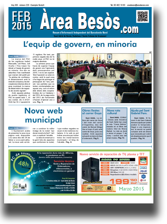 InicioHemeroteca (25 Anys) Hemeroteca (25 Anys) Àrea Besòs 220 Febrer 2015 Redacció 28 de junio de 2020 FacebookTwitter AB0220 Cuota FacebookTwitter Artículo anteriorÀrea Besòs 219 Gener 2015Artículo siguienteÀrea Besòs 221 Març 2015 Redaccióhttp://www.areabesos.com/diario Últims Articles Comarca Nova edició del CINC, el Cicle de Cinema Infantil en Català, a l’Ocine del Màgic Badalona Actualitat L’ Ajuntament de Sant Adrià de Besòs i el Col·legi Sant Gabriel col·laboren amb l’organització Abre sus Ojos Actualitat Els Mossos d’Esquadra detenen l’autor del robatori d’una bicicleta elèctrica i la retornen al seu propietari a Sant Adrià de Besòs DEJA UNA RESPUESTA Cancelar respuesta Comentario: Por favor ingrese su comentario! Nombre:* Por favor ingrese su nombre aquí Correo electrónico:* ¡Has introducido una dirección de correo electrónico incorrecta! Por favor ingrese su dirección de correo electrónico aquí Sitio web: Guardar mi nombre, correo electrónico y sitio web en este navegador la próxima vez que comente. Δ 3,391FansMe gusta1,640SeguidoresSeguir0SuscriptoresSuscribirte Publicitat Últims Articles Comarca Nova edició del CINC, el Cicle de Cinema Infantil en Català, a l’Ocine del Màgic Badalona Actualitat L’ Ajuntament de Sant Adrià de Besòs i el Col·legi Sant Gabriel col·laboren amb l’organització Abre sus Ojos Actualitat Els Mossos d’Esquadra detenen l’autor del robatori d’una bicicleta elèctrica i la retornen al seu propietari a Sant Adrià de Besòs Actualitat Mor un home mentre treballava en una empresa de Sant Adrià Opinió Chínchate Ayuso: la Flotilla está triunfando Cargar más