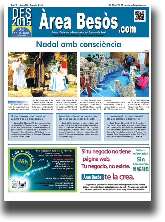 InicioHemeroteca (25 Anys) Hemeroteca (25 Anys) Àrea Besòs 230 Desembre 2015 Redacció 8 de julio de 2020 FacebookTwitter AB0230 Cuota FacebookTwitter Artículo anteriorÀrea Besòs 229 Novembre 2015Artículo siguienteÀrea Besòs 231 Gener 2016 Redaccióhttp://www.areabesos.com/diario Últims Articles Comarca Nova edició del CINC, el Cicle de Cinema Infantil en Català, a l’Ocine del Màgic Badalona Actualitat L’ Ajuntament de Sant Adrià de Besòs i el Col·legi Sant Gabriel col·laboren amb l’organització Abre sus Ojos Actualitat Els Mossos d’Esquadra detenen l’autor del robatori d’una bicicleta elèctrica i la retornen al seu propietari a Sant Adrià de Besòs DEJA UNA RESPUESTA Cancelar respuesta Comentario: Por favor ingrese su comentario! Nombre:* Por favor ingrese su nombre aquí Correo electrónico:* ¡Has introducido una dirección de correo electrónico incorrecta! Por favor ingrese su dirección de correo electrónico aquí Sitio web: Guardar mi nombre, correo electrónico y sitio web en este navegador la próxima vez que comente. Δ 3,391FansMe gusta1,640SeguidoresSeguir0SuscriptoresSuscribirte Publicitat Últims Articles Comarca Nova edició del CINC, el Cicle de Cinema Infantil en Català, a l’Ocine del Màgic Badalona Actualitat L’ Ajuntament de Sant Adrià de Besòs i el Col·legi Sant Gabriel col·laboren amb l’organització Abre sus Ojos Actualitat Els Mossos d’Esquadra detenen l’autor del robatori d’una bicicleta elèctrica i la retornen al seu propietari a Sant Adrià de Besòs Actualitat Mor un home mentre treballava en una empresa de Sant Adrià Opinió Chínchate Ayuso: la Flotilla está triunfando Cargar más