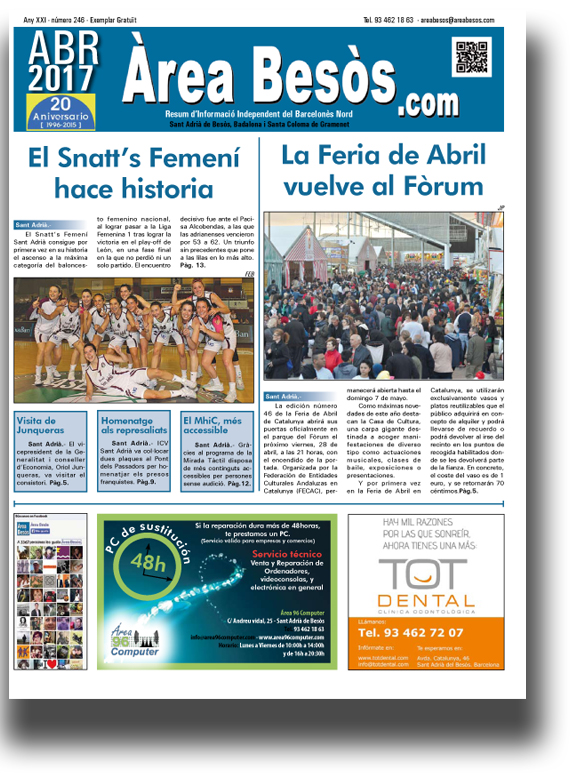 InicioHemeroteca (25 Anys) Hemeroteca (25 Anys) Àrea Besòs 246 Abril 2017 Redacció 27 de julio de 2020 FacebookTwitter AB0246 Cuota FacebookTwitter Artículo anteriorNou servei que mostra en temps real el nivell d’ocupació de les platgesArtículo siguienteSant Adrià aprova inicialment el PDU de les Tres Xemeneies Redaccióhttp://www.areabesos.com/diario Últims Articles Comarca Nova edició del CINC, el Cicle de Cinema Infantil en Català, a l’Ocine del Màgic Badalona Actualitat L’ Ajuntament de Sant Adrià de Besòs i el Col·legi Sant Gabriel col·laboren amb l’organització Abre sus Ojos Actualitat Els Mossos d’Esquadra detenen l’autor del robatori d’una bicicleta elèctrica i la retornen al seu propietari a Sant Adrià de Besòs DEJA UNA RESPUESTA Cancelar respuesta Comentario: Por favor ingrese su comentario! Nombre:* Por favor ingrese su nombre aquí Correo electrónico:* ¡Has introducido una dirección de correo electrónico incorrecta! Por favor ingrese su dirección de correo electrónico aquí Sitio web: Guardar mi nombre, correo electrónico y sitio web en este navegador la próxima vez que comente. Δ 3,391FansMe gusta1,640SeguidoresSeguir0SuscriptoresSuscribirte Publicitat Últims Articles Comarca Nova edició del CINC, el Cicle de Cinema Infantil en Català, a l’Ocine del Màgic Badalona Actualitat L’ Ajuntament de Sant Adrià de Besòs i el Col·legi Sant Gabriel col·laboren amb l’organització Abre sus Ojos Actualitat Els Mossos d’Esquadra detenen l’autor del robatori d’una bicicleta elèctrica i la retornen al seu propietari a Sant Adrià de Besòs Actualitat Mor un home mentre treballava en una empresa de Sant Adrià Opinió Chínchate Ayuso: la Flotilla está triunfando Cargar más