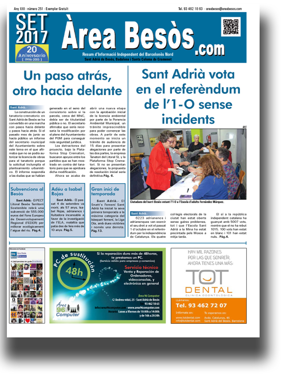 InicioHemeroteca (25 Anys) Hemeroteca (25 Anys) Àrea Besòs 251 Setembre 2017 Redacció 2 de agosto de 2020 FacebookTwitter AB0251 Cuota FacebookTwitter Artículo anteriorÀrea Besòs 250 Especial Festa Major 2017Artículo siguienteÀrea Besòs 252 Octubre 2017 Redaccióhttp://www.areabesos.com/diario Últims Articles Comarca Nova edició del CINC, el Cicle de Cinema Infantil en Català, a l’Ocine del Màgic Badalona Actualitat L’ Ajuntament de Sant Adrià de Besòs i el Col·legi Sant Gabriel col·laboren amb l’organització Abre sus Ojos Actualitat Els Mossos d’Esquadra detenen l’autor del robatori d’una bicicleta elèctrica i la retornen al seu propietari a Sant Adrià de Besòs DEJA UNA RESPUESTA Cancelar respuesta Comentario: Por favor ingrese su comentario! Nombre:* Por favor ingrese su nombre aquí Correo electrónico:* ¡Has introducido una dirección de correo electrónico incorrecta! Por favor ingrese su dirección de correo electrónico aquí Sitio web: Guardar mi nombre, correo electrónico y sitio web en este navegador la próxima vez que comente. Δ 3,391FansMe gusta1,640SeguidoresSeguir0SuscriptoresSuscribirte Publicitat Últims Articles Comarca Nova edició del CINC, el Cicle de Cinema Infantil en Català, a l’Ocine del Màgic Badalona Actualitat L’ Ajuntament de Sant Adrià de Besòs i el Col·legi Sant Gabriel col·laboren amb l’organització Abre sus Ojos Actualitat Els Mossos d’Esquadra detenen l’autor del robatori d’una bicicleta elèctrica i la retornen al seu propietari a Sant Adrià de Besòs Actualitat Mor un home mentre treballava en una empresa de Sant Adrià Opinió Chínchate Ayuso: la Flotilla está triunfando Cargar más