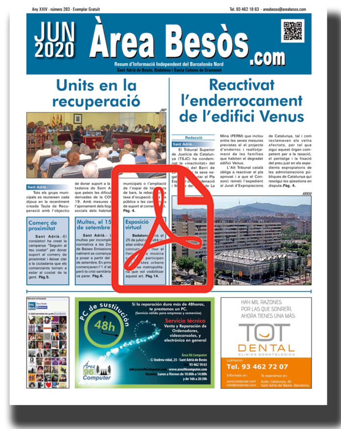 InicioEdició impresa Edició impresaHemeroteca (25 Anys) Àrea Besòs 283 Juny 2020 Montse Sáez 25 de junio de 2020 FacebookTwitter AB0283-1 Cuota FacebookTwitter Artículo anteriorÀrea Besòs 217 Desembre 2014Artículo siguienteÀrea Besòs 218 Especial Nadal 2014 Montse Sáezhttp://www.areabesos.com/diario Últims Articles Comarca Nova edició del CINC, el Cicle de Cinema Infantil en Català, a l’Ocine del Màgic Badalona Actualitat L’ Ajuntament de Sant Adrià de Besòs i el Col·legi Sant Gabriel col·laboren amb l’organització Abre sus Ojos Actualitat Els Mossos d’Esquadra detenen l’autor del robatori d’una bicicleta elèctrica i la retornen al seu propietari a Sant Adrià de Besòs DEJA UNA RESPUESTA Cancelar respuesta Comentario: Por favor ingrese su comentario! Nombre:* Por favor ingrese su nombre aquí Correo electrónico:* ¡Has introducido una dirección de correo electrónico incorrecta! Por favor ingrese su dirección de correo electrónico aquí Sitio web: Guardar mi nombre, correo electrónico y sitio web en este navegador la próxima vez que comente. Δ 3,391FansMe gusta1,640SeguidoresSeguir0SuscriptoresSuscribirte Publicitat Últims Articles Comarca Nova edició del CINC, el Cicle de Cinema Infantil en Català, a l’Ocine del Màgic Badalona Actualitat L’ Ajuntament de Sant Adrià de Besòs i el Col·legi Sant Gabriel col·laboren amb l’organització Abre sus Ojos Actualitat Els Mossos d’Esquadra detenen l’autor del robatori d’una bicicleta elèctrica i la retornen al seu propietari a Sant Adrià de Besòs Actualitat Mor un home mentre treballava en una empresa de Sant Adrià Opinió Chínchate Ayuso: la Flotilla está triunfando Cargar más