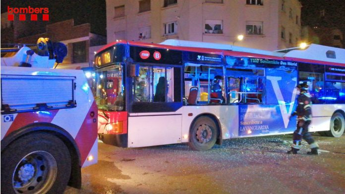 Esta madrugada, a las 5 de la mañana, dos autobuses han chocado en Sant Adrià entre las calles Tibidabo y Mare de Déu de Montserrat, provocando heridas leves en dos pasajeros. Ambos conductores han sido trasladados a sus respectivas mutuas para revisar las contusiones. Cuatro dotaciones de bomberos han trabajado para limpiar la calzada.
