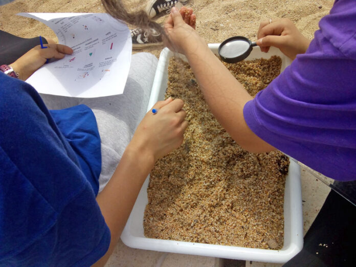 Una de les principals característiques d’aquests projectes d’aprenentatge i servei de l’AMB és que l’alumnat, a més d’aprendre i fer un servei ambiental, l’han de transmetre. En aquest cas han fet de monitors ambientals amb els nens i nenes de sisè de primària de l’Institut escola Rafael Alberti de Badalona que s’ha portat a terme a la platja dels Pescadors.