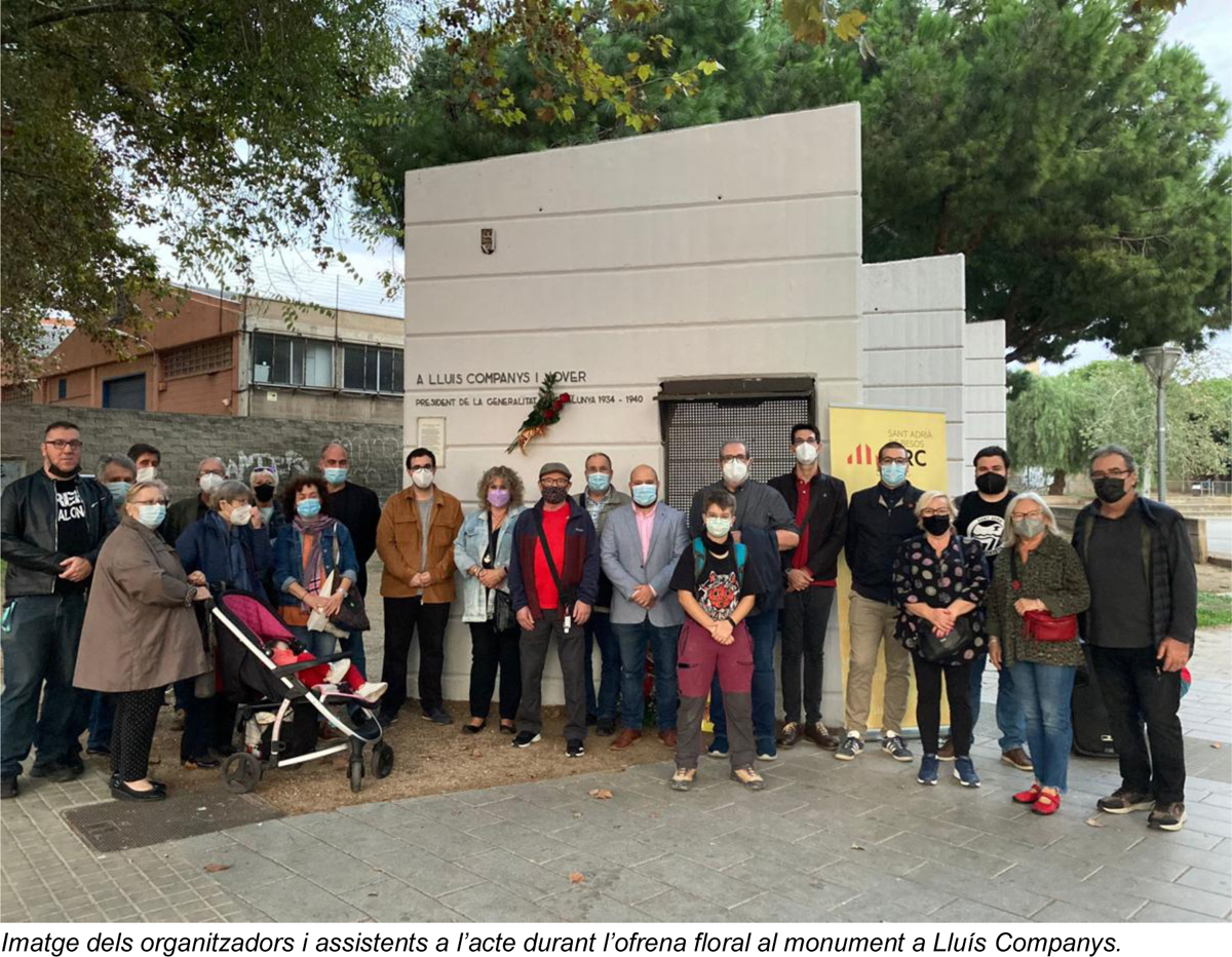 El passat divendres 15 d’octubre, ERC Sant Adrià, conjuntament amb el Jovent Republicà, el Centre Republicà Adrianenc i amb el suport de Sant Adrià en Comú, Moviment d’Esquerres, Junts per Catalunya, les Candidatures d’Unitat Popular, Endavant i l’Assemblea Nacional de Catalunya, van realitzar al monument a Lluís Companys de la nostra ciutat, un sentit acte d’homenatge i memòria a l’expresident de la Generalitat.