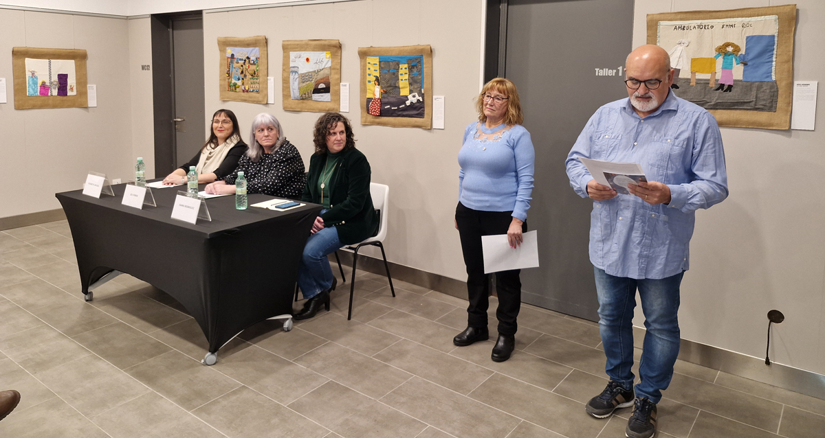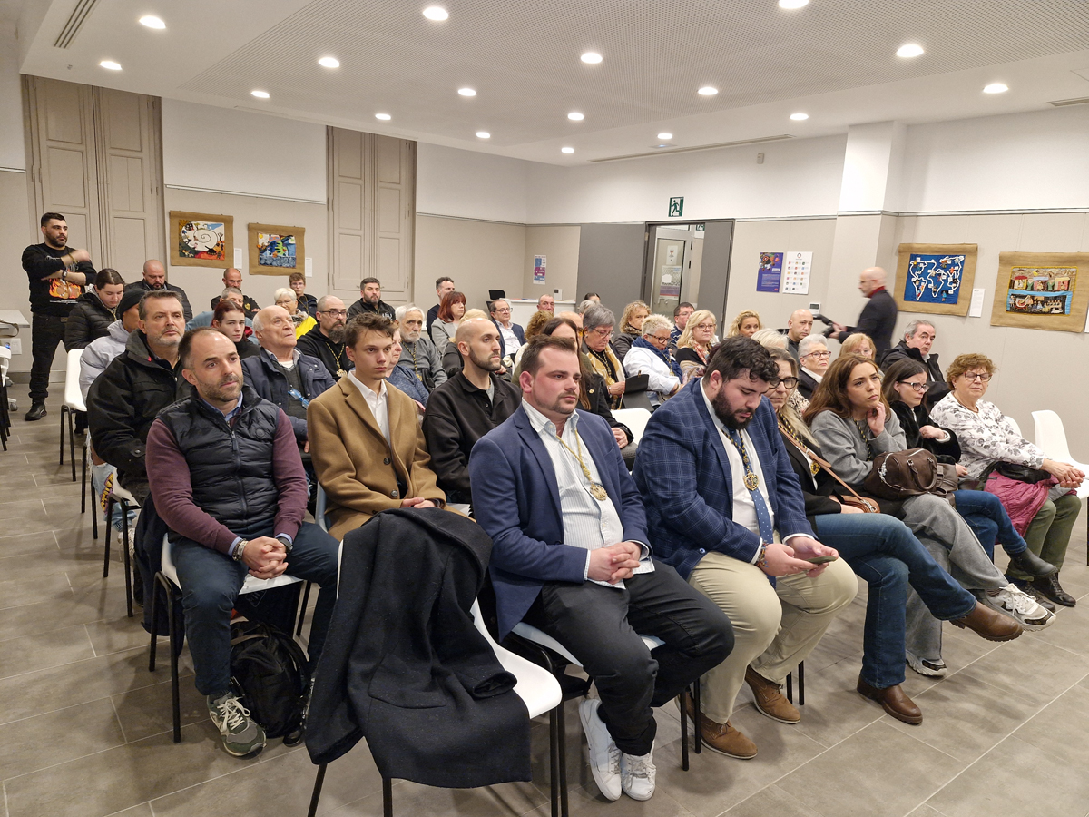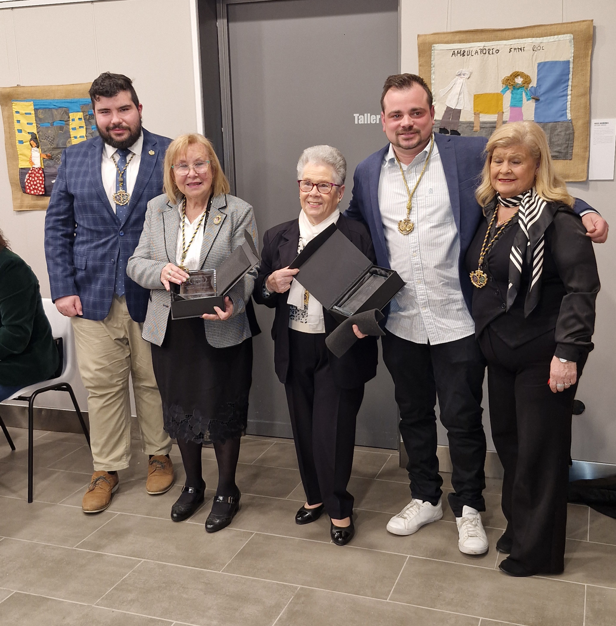 Para finalizar, antes del aperitivo, un momento muy esperado por algunos de los asistentes como es la entrega de reconocimientos a dos mujeres que llevaban más de 40 años trabajando por su Hermandad, la de Nuestro Padre Jesús Nazareno y Nuestra Señora de la Esperanza de Mataró. Isabel Noé Taberner y Carmen Oliva Mancha, que empezaron cosiendo ropa para las imágenes, que por cierto todavía no tenían, decía Carmen “estábamos nosotras antes que El Nazareno” … Y no solamente cosiendo sino regalando, y así han seguido hasta ahora, además de abrir la capilla cada viernes y sábado, vender lotería y lo que haga falta. Mujeres dignas de admiración también por su humildad y alegría con la que trabajan sin esperar nada a cambio, a las que el reconocimiento les ha venido por sorpresa, afirmando que no eran merecedoras de tal premio, pero muy contentas e ilusionadas de haberlo recibido, por cierto, acompañadas con el cariño de varios miembros de su Hermandad y su junta directiva. Ha sido un honor para nosotras aprender de su testimonio y poder entregarles este galardón.