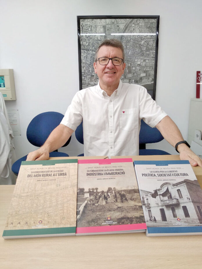 El passat mes de juliol es va presentar «La història de Sant Adrià de Besòs: de 1900 a 1939», una obra de l’historiador Manuel Márquez Berrocal que consta de tres volums: «La construcció de la ciutat. Del món rural a l’urbà»; «La formació de la classe obrera: Indústria i Immigració» i «La lluita per la llibertat: Política, societat i cultura». El treball, que és el resultat d’una llarga i intensa investigació de més de 20 anys, ha estat reconegut amb el Premi Extraordinari de Doctorat de la UAB de l’any 2019. Els tres volums, publicats per l’Ajuntament de Sant Adrià, es poden adquirir a l’Arxiu Municipal de Sant Adrià de Besòs «Isabel Rojas Castroverde» per 15 € (preu públic)
