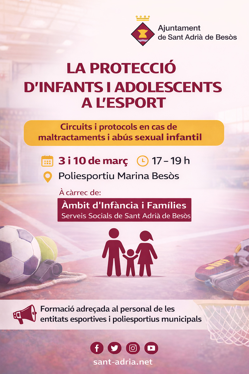 L’Ajuntament de Sant Adrià de Besòs organitza una formació adreçada al personal de les entitats esportives municipals i dels poliesportius per reforçar la protecció d’infants i adolescents en l’àmbit esportiu.