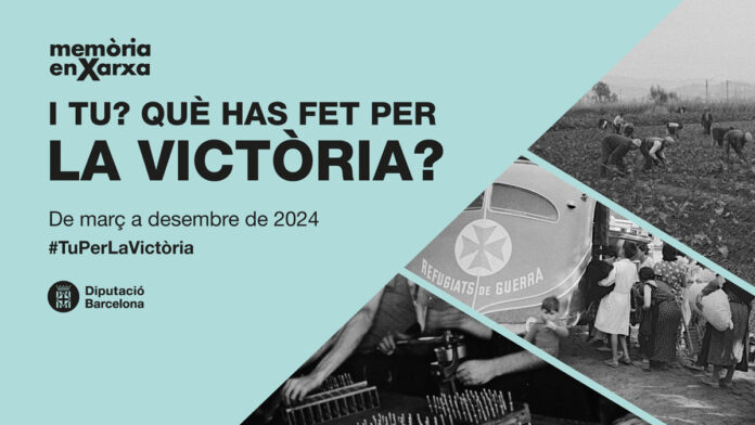 «I tu? Què has fet per la victòria?» és una activitat de l’Oficina de Patrimoni Cultural de la Diputació de Barcelona en format d’exposició que es pot veure simultàniament a diferents municipis al llarg de 2024. La mostra està dedicada a les múltiples activitats realitzades a la rereguarda republicana en un context de guerra oberta, de revolució social i d’aïllament internacional, on l’economia del país es va veure obligada a adaptar-se a la nova situació, fet que es va traduir en la creació de la indústria de guerra, en l’aparició de col·lectivitats agrícoles i en la realització d’incomptables activitats per acollir a les persones refugiades i desplaçades. Aquesta exposició de Memòria en Xarxa és una aportació més a la recuperació de la memòria històrica que vol destacar la importància dels museus i arxius com a dipositaris d’un llegat històric que ens és comú.