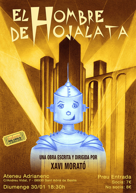 Aquest proper diumenge, 30 de gener, la sala d’actes de l’Ateneu Adrianenc acull l’obra de teatre «El Hombre de Hojalata», escrita i dirigida per Xavi Morató i interpretada per la Companyia Bakastei Teatre. L’obra parla de com els robots es quedaran amb la feina de tots els humans. Això és el que li passa a la protagonista, Angus, una periodista que és substituida per el robot XZ2314-MAX, que és capaç de realitzar tot el diari en pocs segons. Angus no es rendeix, i lluita per recuperar la seva feina amb el que ens distingueix dels robots: humanitat.Xavi Morató és guionista de la revista El Jueves, dramaturg, direcotr, productor i actor. Llicenciat en Comunicació Audiovisual i amb estudis en Direcció i Dramatúrgia, ha guanyat tres premis literaris teatrals. «El Hombre de Hojalata» començarà a les 18.30 hores i el preu de l’entrada és de 7 euros pels socis de l’Ateneu Adrianenc, i 8 pels no socis.