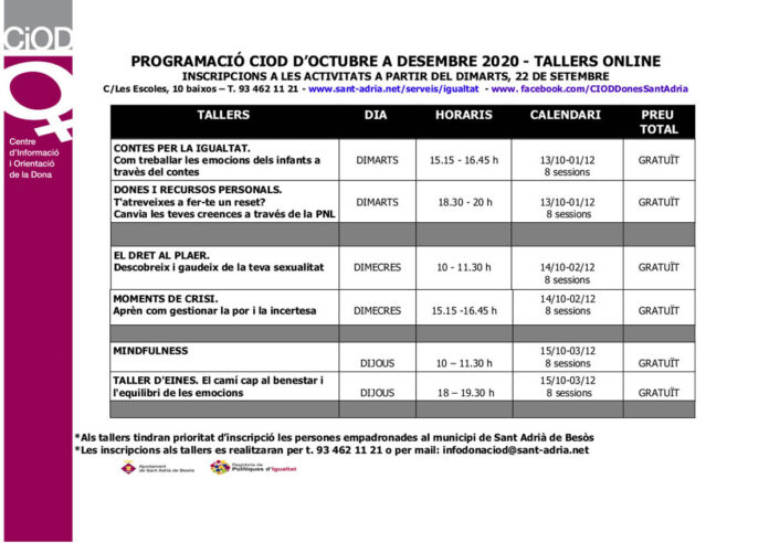 El proper dimarts 22 de setembre comencen les inscripcions als tallers que s’organitzen des del Centre d’Informació i Orientació de la Dona de l’Ajuntament de Sant Adrià.