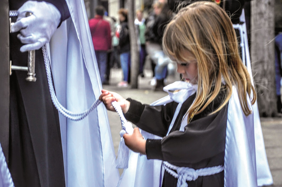 Una de las imágenes de la exposición, «¡Qué comience la Semana Santa», de Jordi Merino. Arriba, otra de las imágenes, «Cofrade 4», de Izan Merino Torralba.