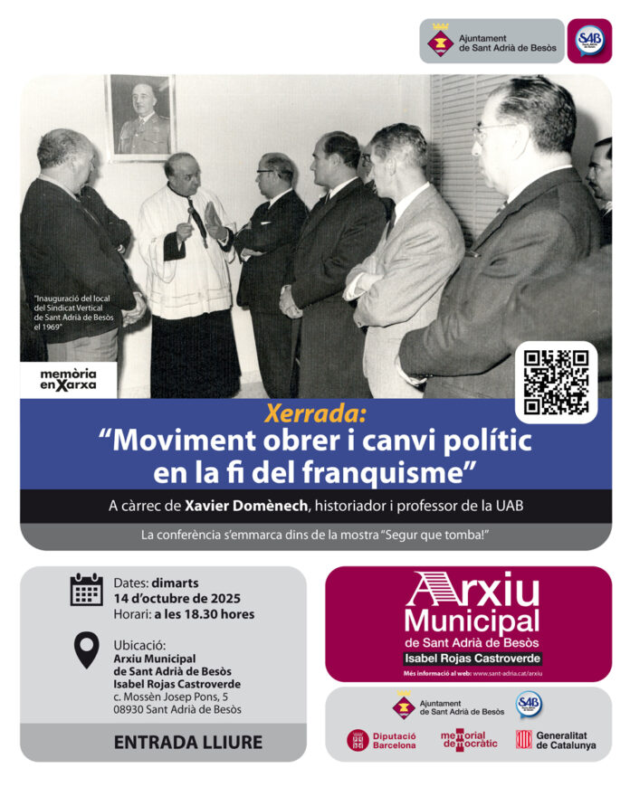 Entre les dècades de 1960 i 1970 es va consolidar el moviment obrer a Sant Adrià de Besòs. Tot i la repressió de la dictadura es pot documentar l’activitat d’organitzacions sindicals clandestines que lluitaven pels drets dels treballadors, sotmesos a dures condicions laborals. Coincidint amb l’exposició «Segur que tomba«, l’historiador Xavier Domènech ofereix una visió general dels moviments socials, els mecanismes i processos de canvi polític i la conformació de les identitats populars als darrers anys de la dictadura.